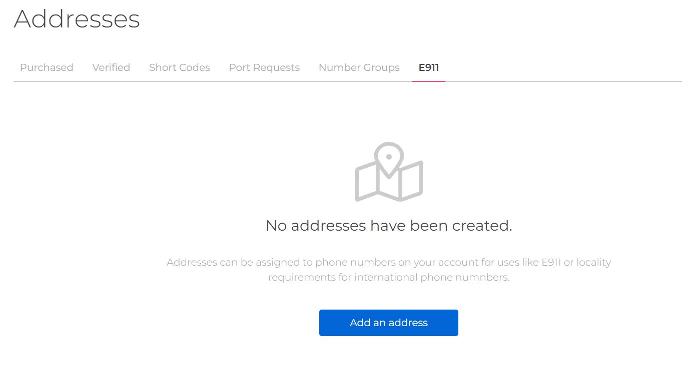 After adding an address in this tab, you can assign the address to a specific phone number from the settings available in the Purchased numbers tab.